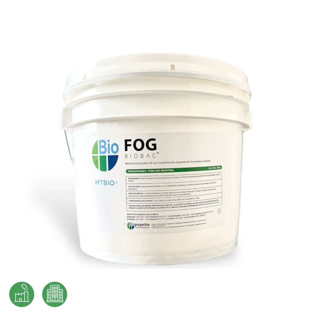 Biobac FOG también contiene enzimas e ingredientes adicionales para mantener los drenajes y trampas de grasas limpias y con flujo libre.